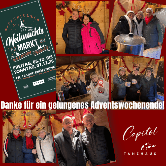 Vom 5. bis 7. Dezember 2025 war wieder Historischer Weihnachtsmarkt in der Lüdenscheider Altstadt und auch in diesem Jahr durften wir vom Capitol Tanzhaus wieder Teil davon sein – und es war ein rundum gelungenes Adventswochenende voller Begegnungen, schöner Momente und weihnachtlicher Stimmung!