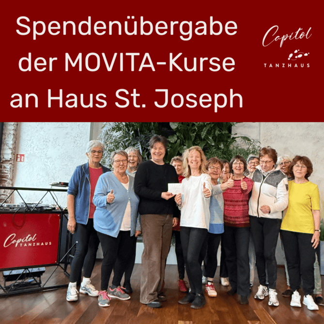 Im Rahmen der Weihnachtsfeier der MOVITA-Tanzkurse im Capitol Tanzhaus wurde eine Spendenaktion durchgeführt, bei der insgesamt 410 Euro zusammenkamen. Die Übergabe des Spendenerlöses fand am Dienstag, den 6. Januar 2026, direkt im Anschluss an den MOVITA-Kurs im Capitol Tanzhaus statt.