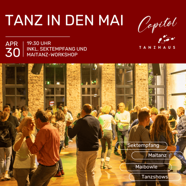 Wir laden alle Tanzbegeisterten herzlich ein, mit uns am 30. April ab 19.30 Uhr im Capitol Tanzhaus in den Mai zu tanzen und zu feiern!